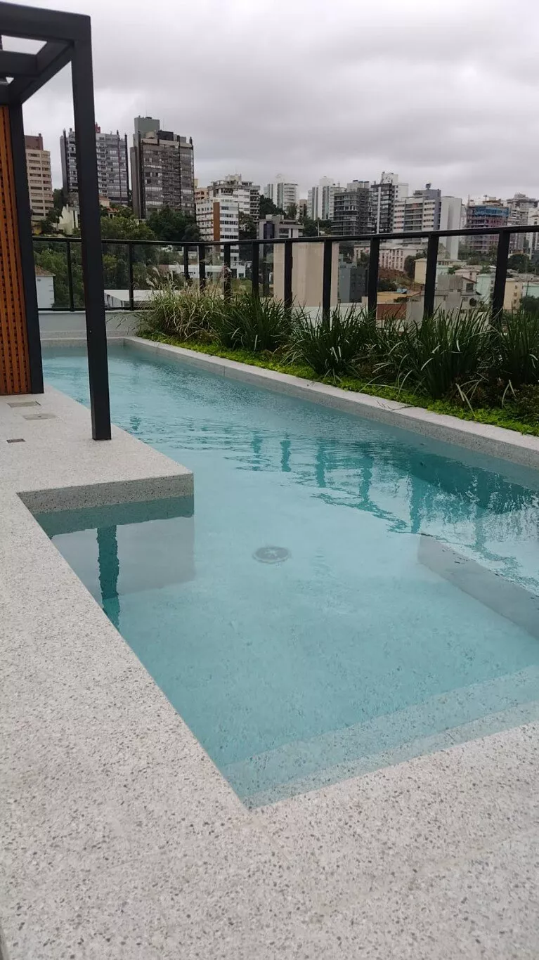 CONDOMÍNIO espetacular com rooftop com espaços gourmet interno e externo com churrasqueira, equipados, amplo terraço com piscina e bar, amplo espaço fitness equipado (para até 65 pessoas), linda vista da cidade e Guaiba, pet place, lavanderia, coworking equipado